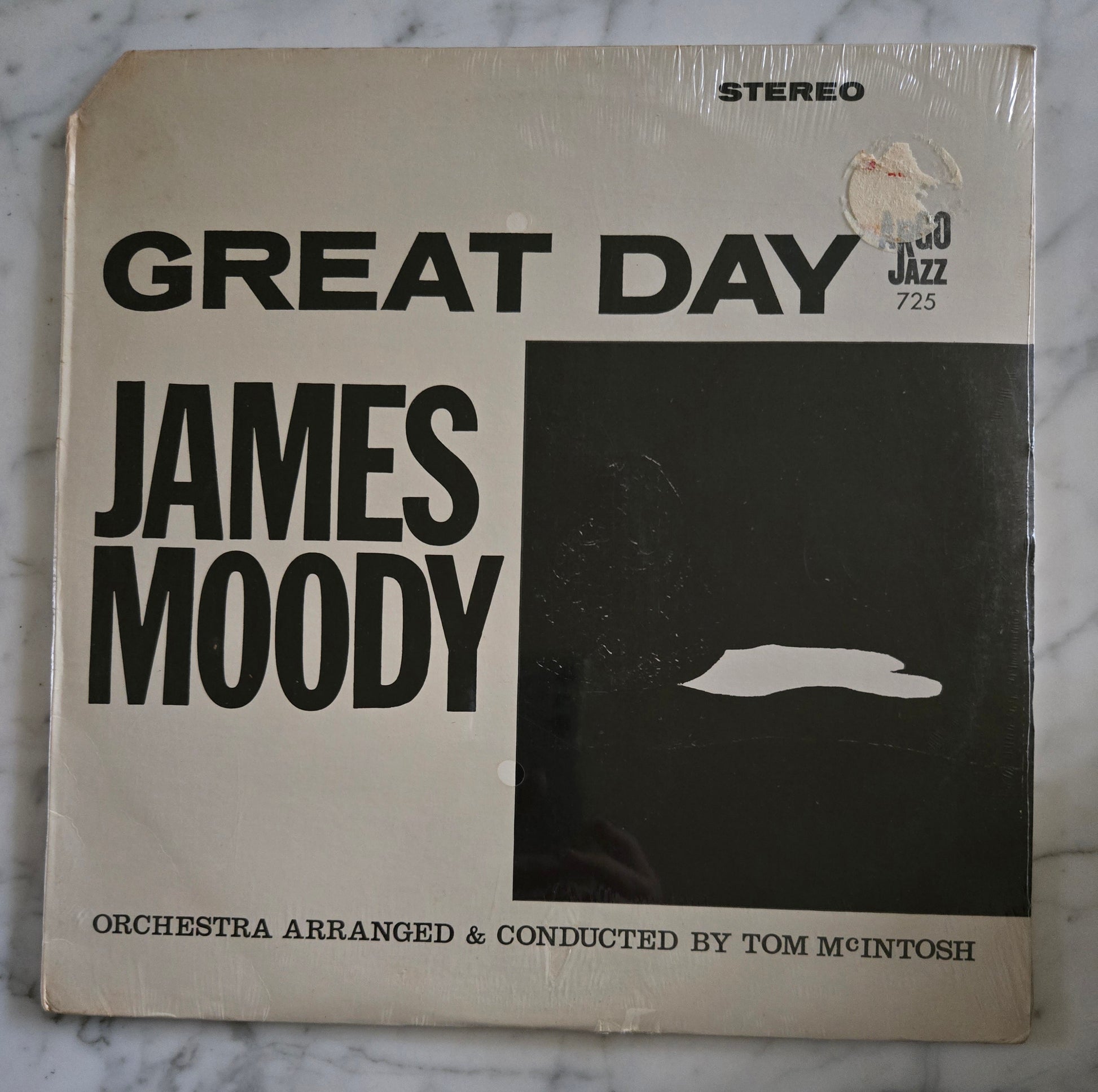 Here is a brand new, never opened, new old stock copy of Great Day by James Moody. Catalog number Argo LP-725. This is a mid 70s reissue. Still sealed in original shrink wrap. The jacket is excellent with one corner cut. I'm assuming the album to be mint. If you have any questions, please get in touch.