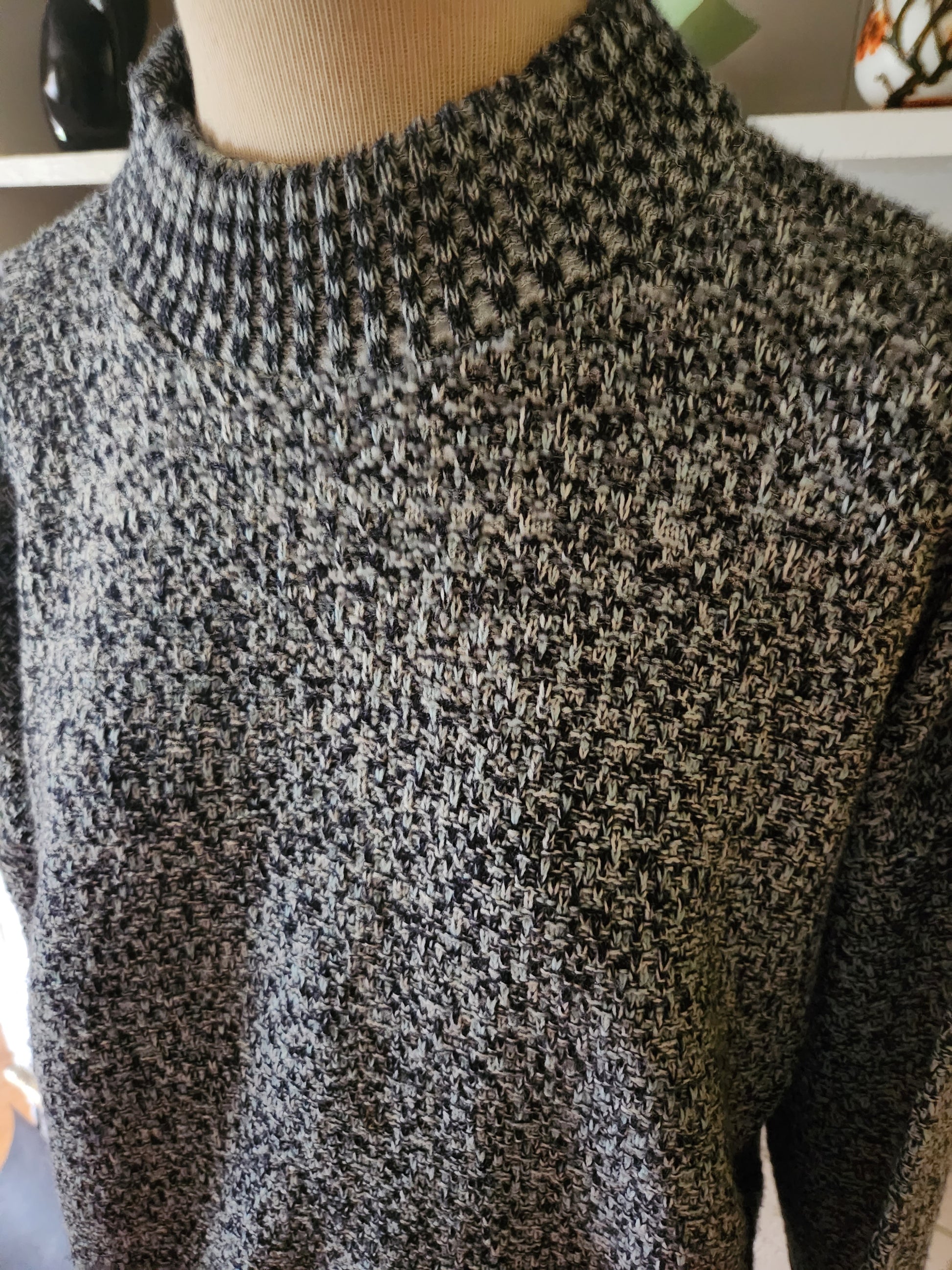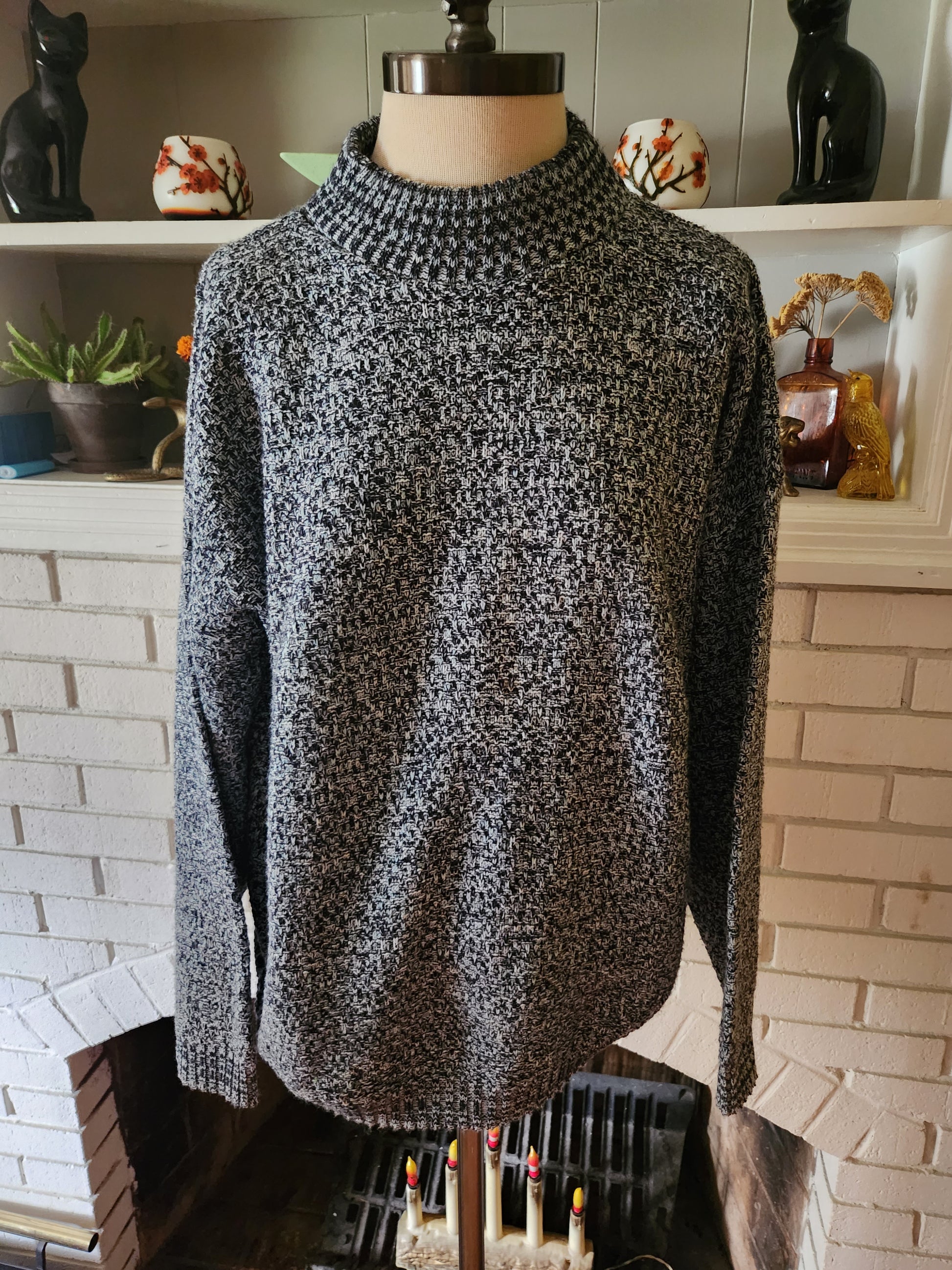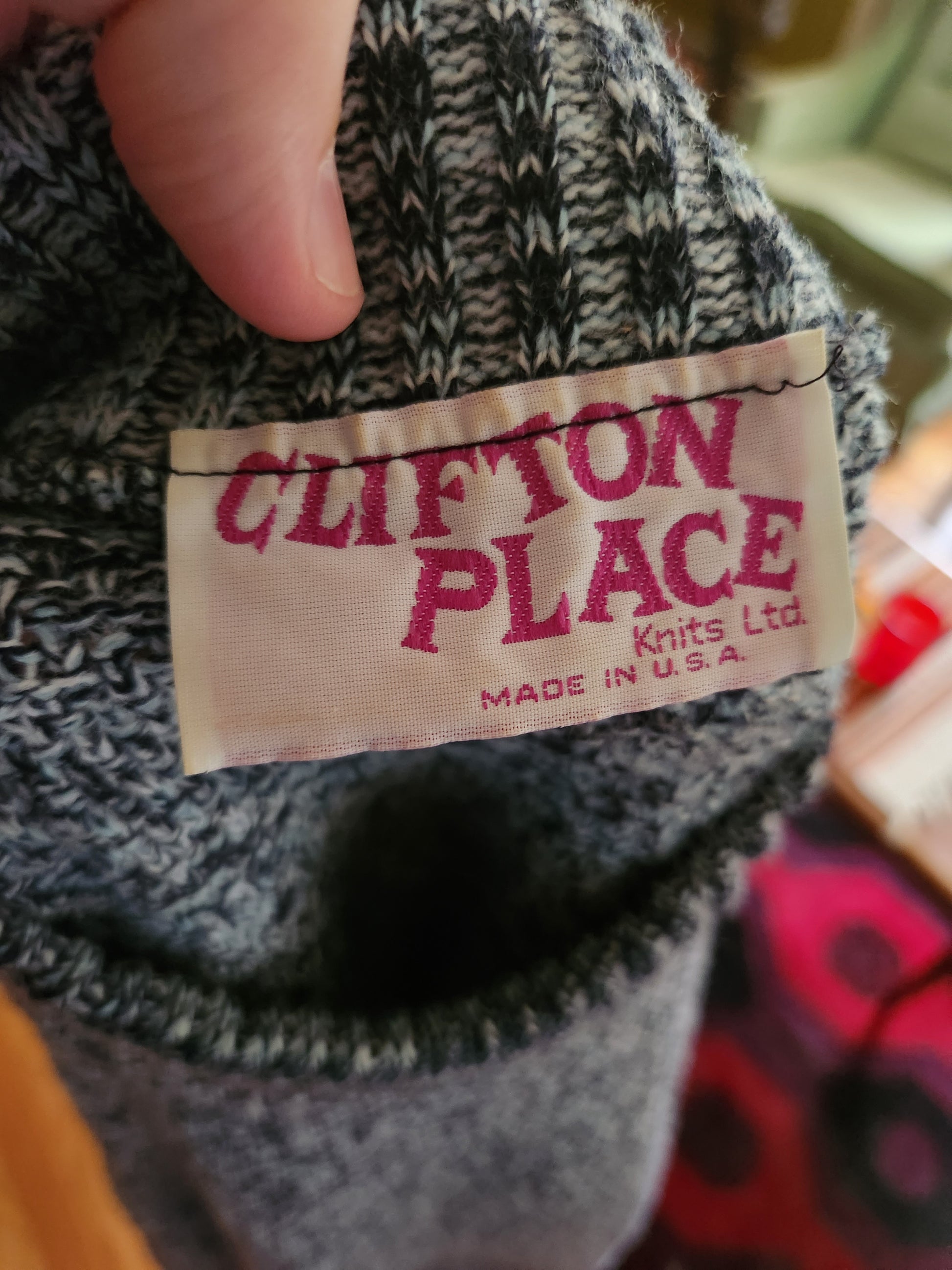Here is an awesome vintage sweater by Clifton Place. And tis the season for a perfect oversize sweater! Feels like acrylic or a blend, made in the USA. Black and white knit with a hint of light blue. Medium weight, soft and comfy. It's in amazing condition, and has years of life left. Here are the measurements taken laying flat. (refer to the last pic above to see how I measure shirts)