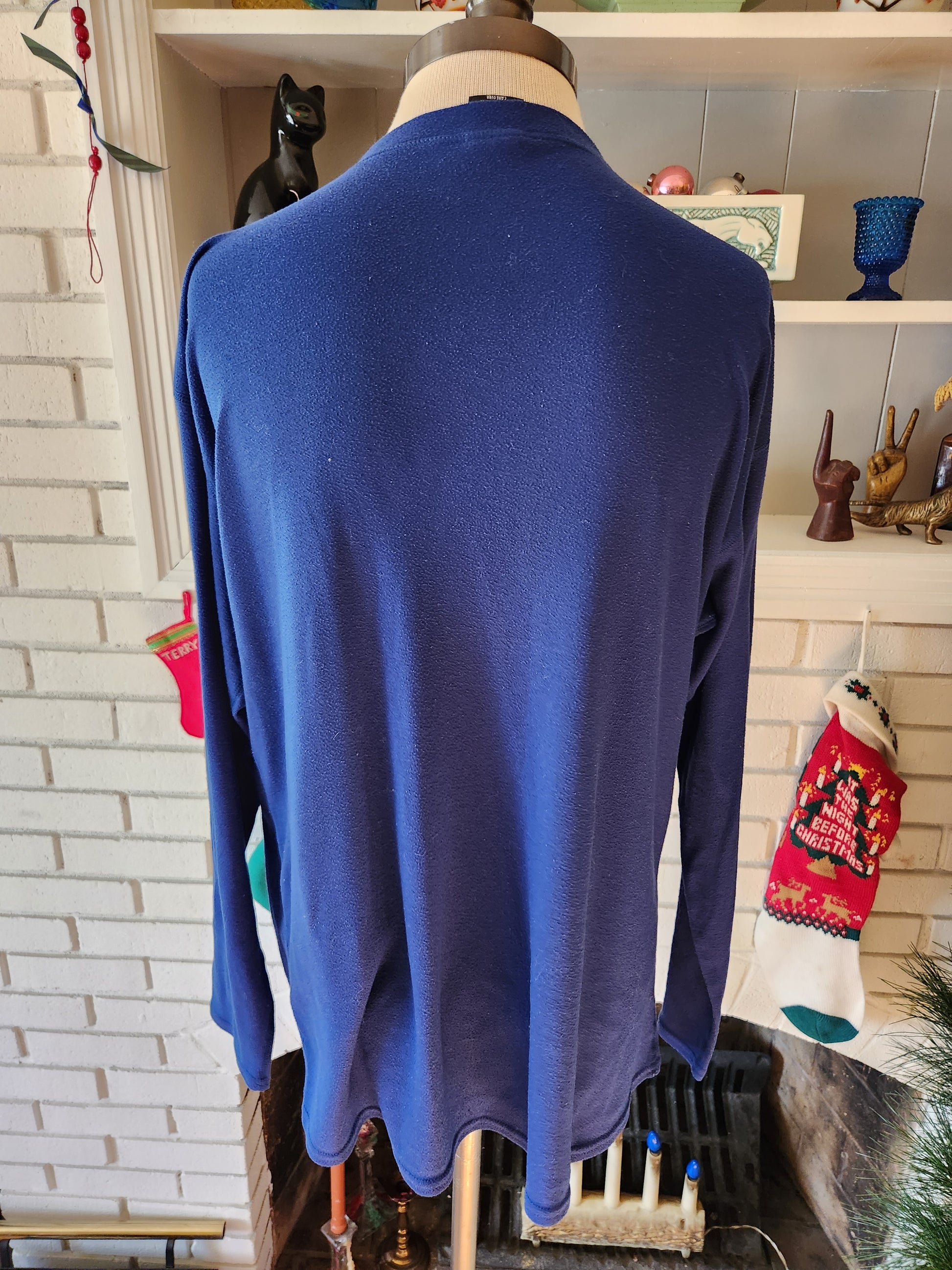 Here is a great vintage shirt by Patagonia. 100% polyester, made in the USA. Royal blue shirt with four button collar and light blue accent. Light weight, thin, and sheer. But warm, super soft and comfy. The tag says Large, but here are the measurements taken laying flat (please refer to the last pic to see how I measure shirts)