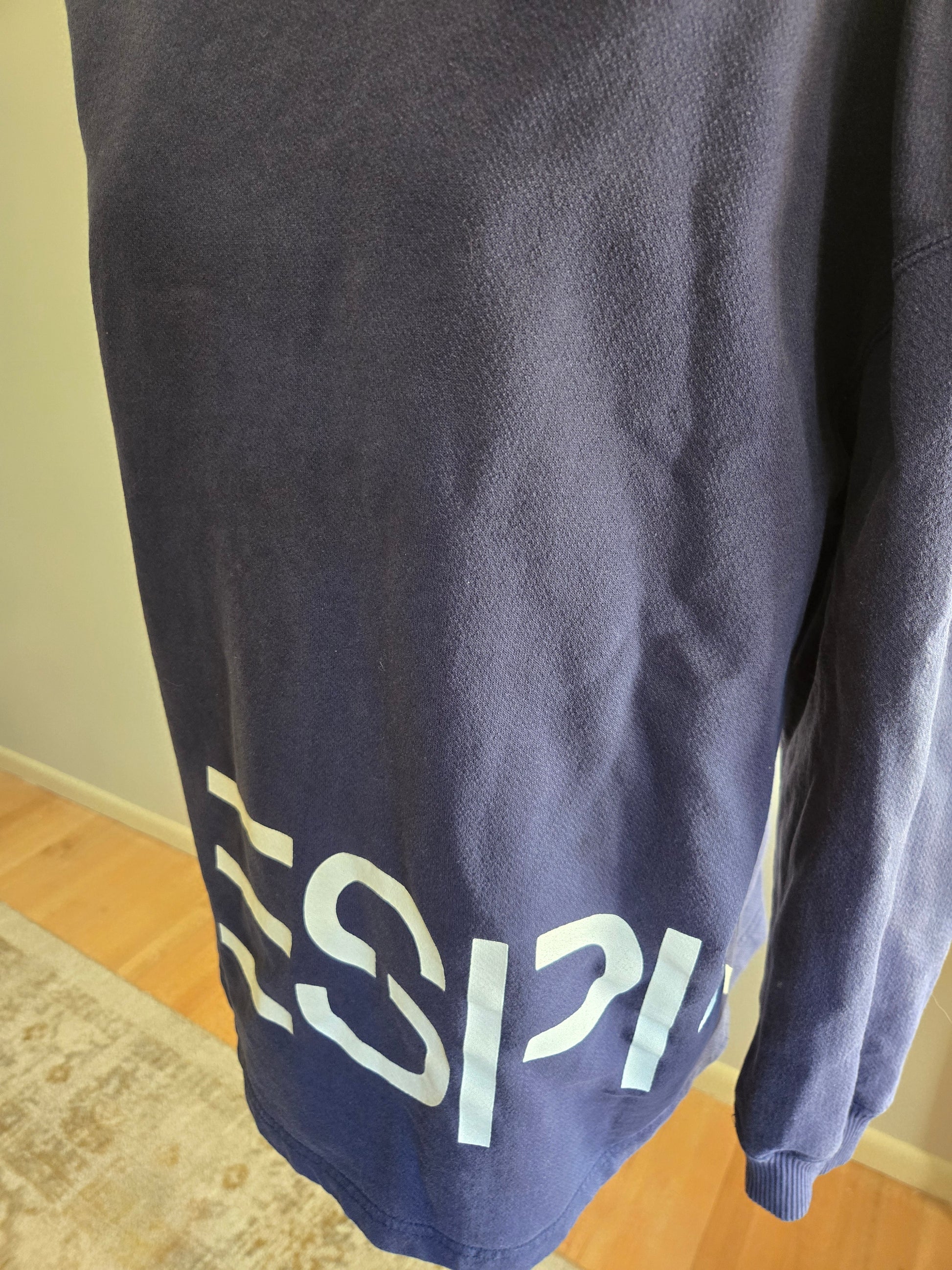 Here is an awesome vintage sweatshirt from the 1980s/1990s by Esprit De Corp Group. Poly and cotton blend, made in the USA. Dark blue shirt with white logo in white across the front/side. Super sharp look that defined an era in middle schools across the country. Medium weight to this one...sort of between a light sweatshirt and a very heavy t-shirt. It's in excellent condition with years of life left! The tag says Medium, but here are the measurements. (refer to the last pic above to see how I measure shirts)