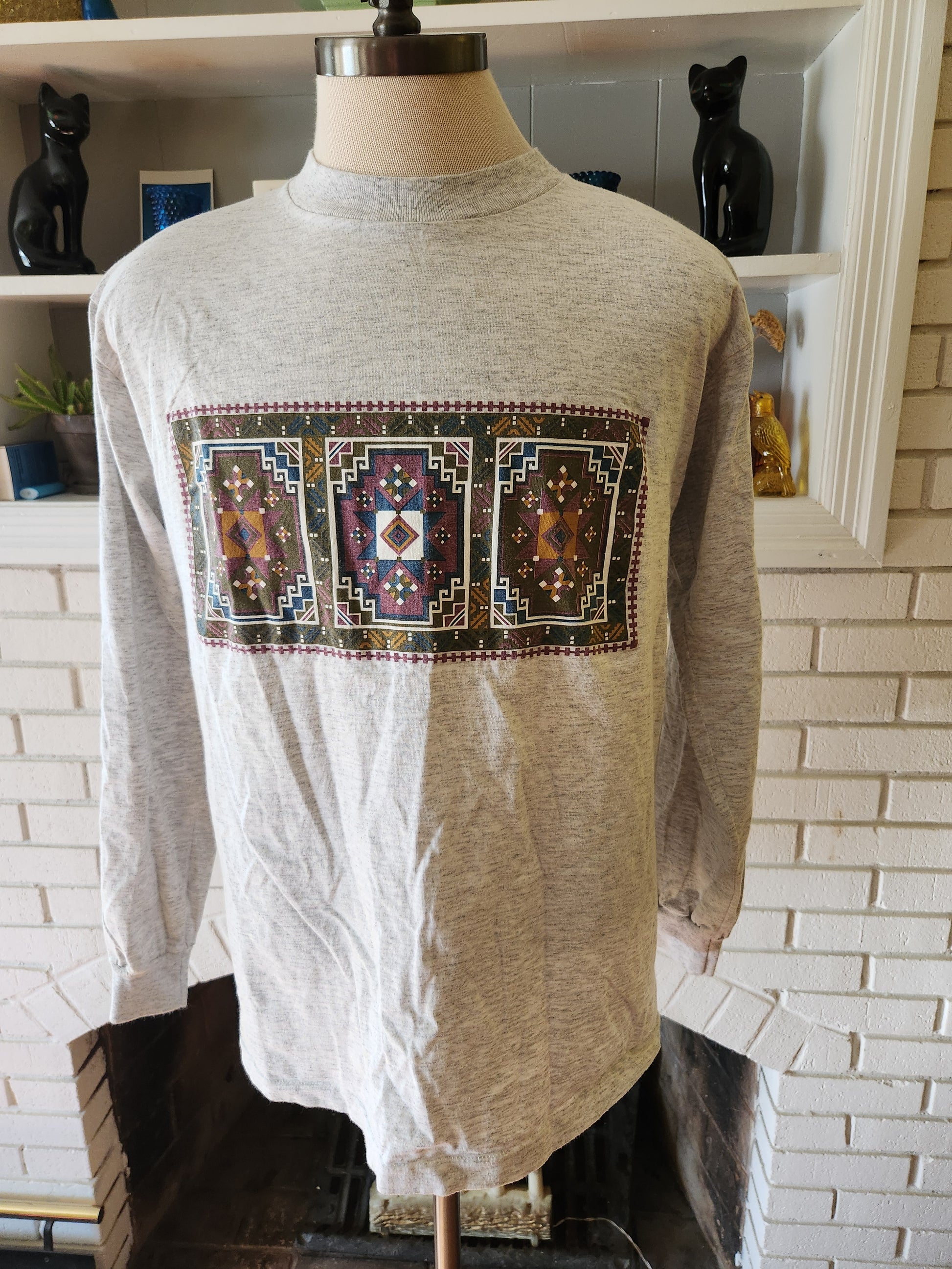 Here is a great vintage shirt from the 1990s by Claiborne. 100% cotton and and made in the USA. Gray shirt with great graphic on the front. It's fairly light weight, soft, and super comfy. It's in incredible condition with tons of life left. The tag says XL, but here are the measurements taken laying flat (please refer to the last pic to see how I measure shirts)
