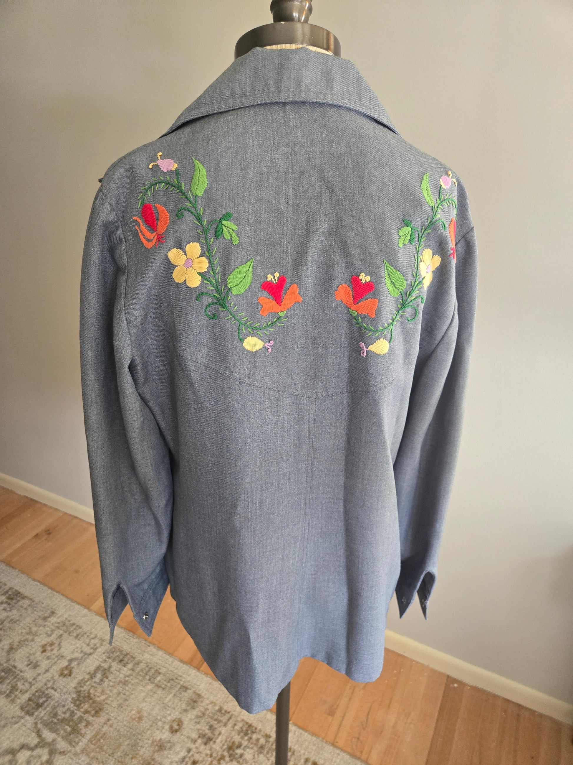 Vintage Long Sleeve Embroidered Western Snap Blouse