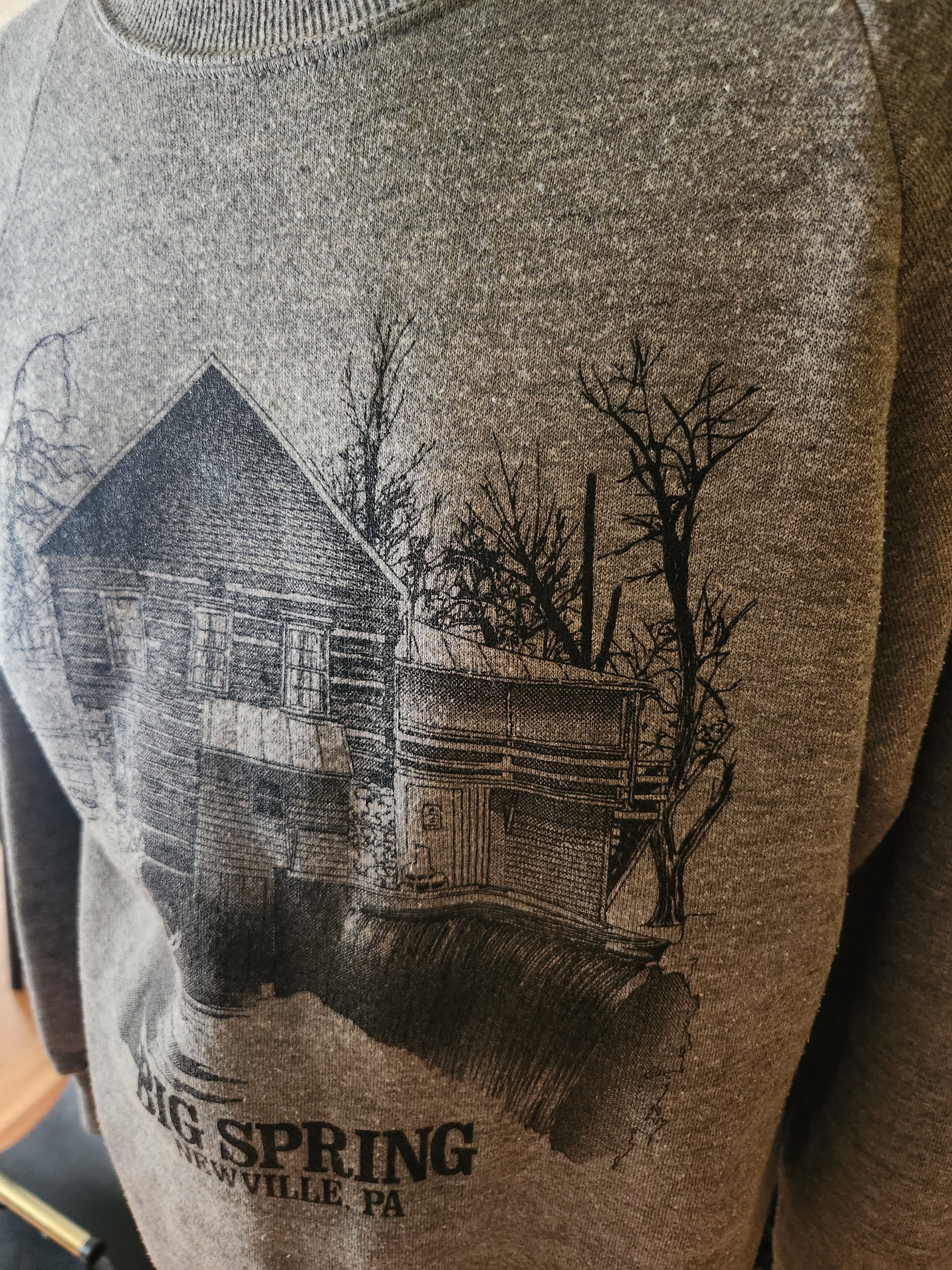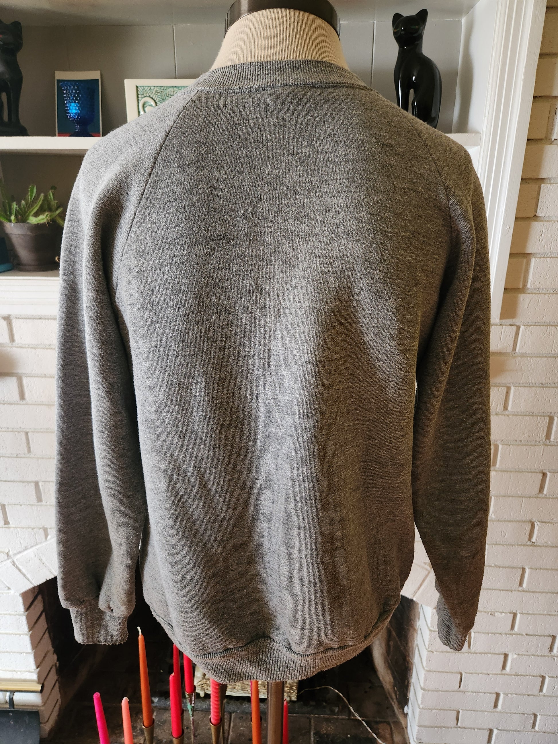 Here is a super cool sweatshirt from the 80's by Jerzees. 50% polyester, 38% cotton, 12% rayon, and made in the USA. Gray shirt with amazing Big Spring graphic on the front. Medium weight, warm, impossibly soft and comfy. It's in amazing condition with tons of life left! The tag says Medium 38-40, but here are the measurements taken laying flat. (refer to the last pic above to see how I measure shirts)