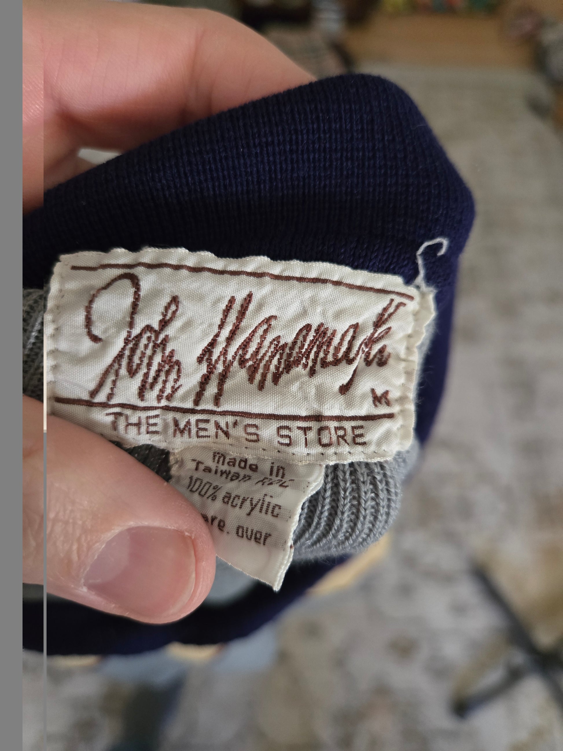 Here is a super cool vintage sweater from the 70s/80s by John Wanamaker. 100% acrylic. Handsome design in blues, tan, and maroon. Vee neck with collar. Very light weight, thin, sheer, soft and cozy. It's in excellent condition with tons of life left! The tag says Medium, but here are the measurements taken laying flat. (refer to the last pic above to see how I measure shirts)
