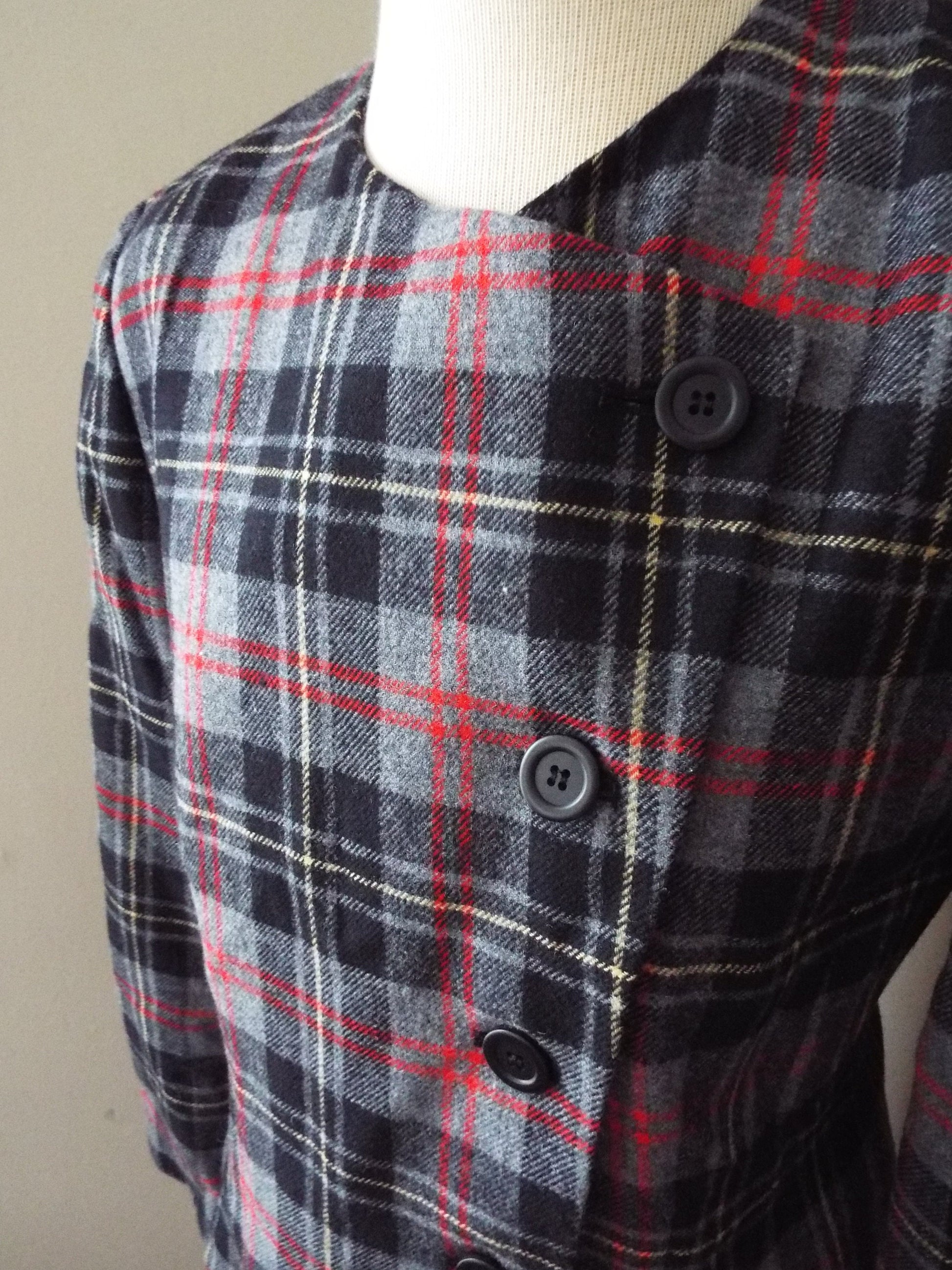 Here is a gorgeous skirt and blazer set by Pendleton Petites. 100% pure virgin wool and made in the USA. Wonderful "Authentic Hunting Macpherson Tartan" plaid of black, gray, yellow, and red. Four buttons down the left side of the blazer. The skirt has two button closure on the left side and a pocket on the hip on the right. Both pieces have black lining on the inside. It's exceptionally well made, and both pieces are in really great shape with years of life left. The tag on the skirt says size 12, but here are the exact measurements taken laying flat. (be sure to reference the last photo to see how I measure dresses)